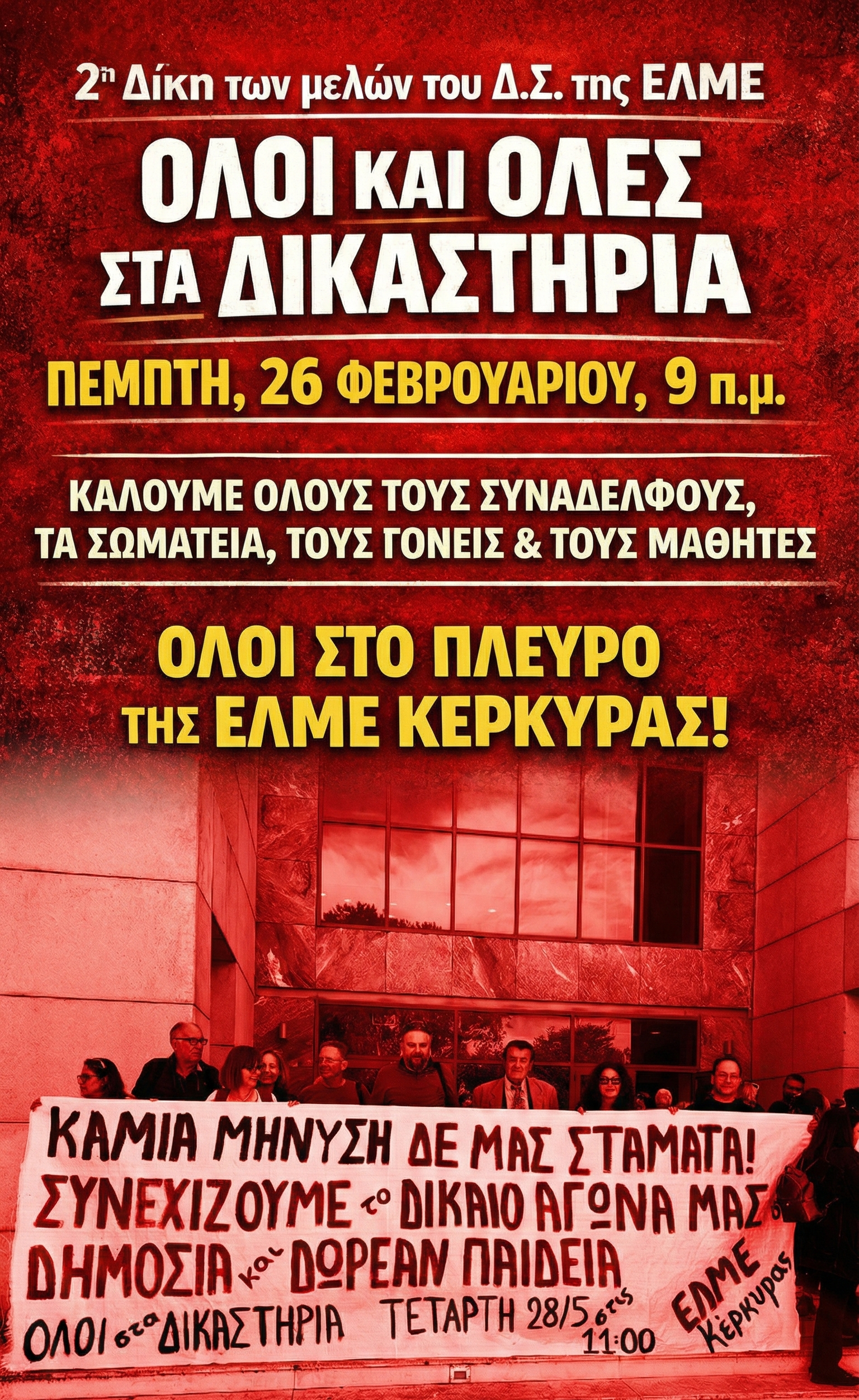 Η ΕΛΜΕ Κέρκυρας καταδικάζει απερίφραστα το σοβαρό...