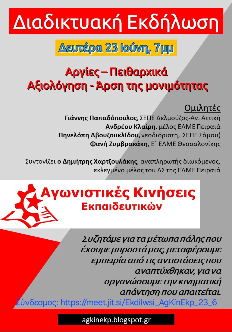 ΣΕΠΕ Αριστοτέλης: Όλες/Όλοι στις αντιπολεμικές αντινατοϊκές διαδηλώσεις Δευτέρα, 23/6, 7:30μμ...