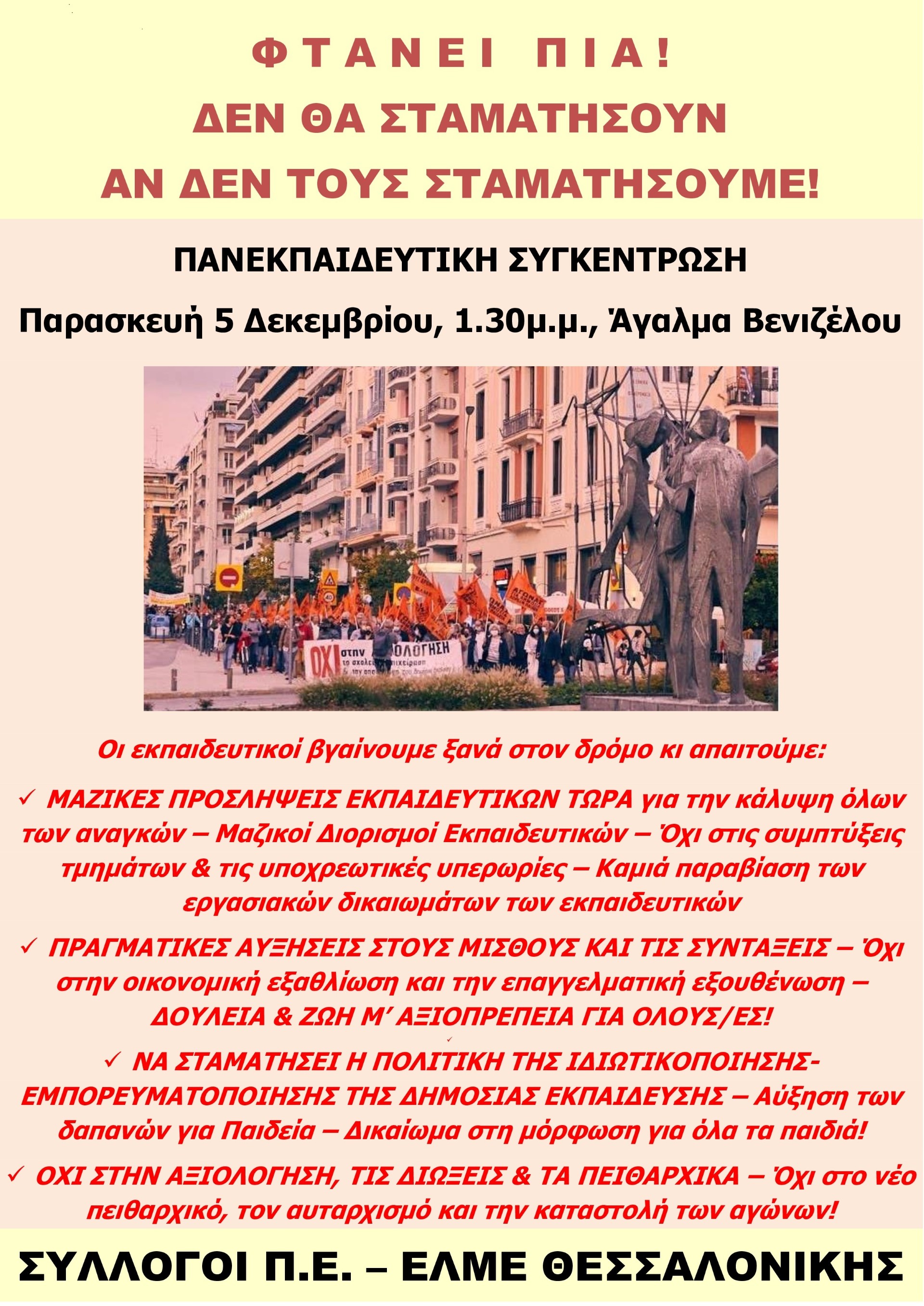 ΠΑΝΕΚΠΑΙΔΕΥΤΙΚΗ ΣΥΓΚΕΝΤΡΩΣΗ ΠΑΡΑΣΚΕΥΗ ,5-12 στη 1.30 μ.μ., ΑΓΑΛΜΑ ΒΕΝΙΖΕΛΟΥ.