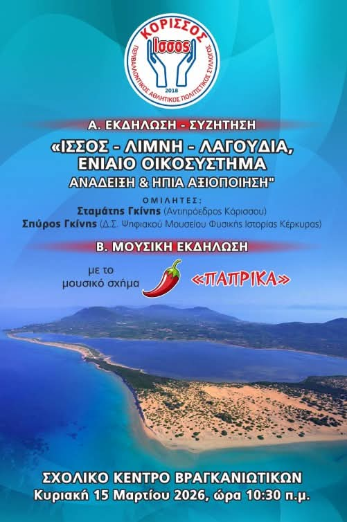 Εκδήλωση – συζήτηση Κυριακή 15 Μάρτη: «Ίσσος – Λαγούδια – Λίμνη Κορισσίων: ενιαίο οικοσύστημα ήπια αξιοποίηση»