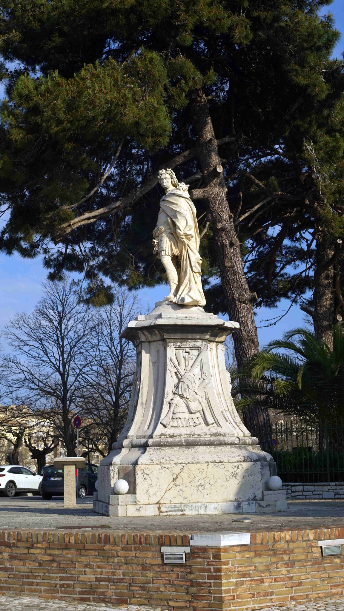 Στην κυκλική βάση του αγάλματος σημειώνεται στα λατινικά ο γλύπτης: