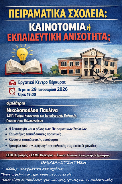 Στην Κέρκυρα διοργανώνεται την Πέμπτη 29 Ιανουαρίου 2026,...