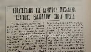 1962: Εγκατεστάθη είς Κέρκυραν µηχάνηµα εξαγωγής ελαιολάδου...
