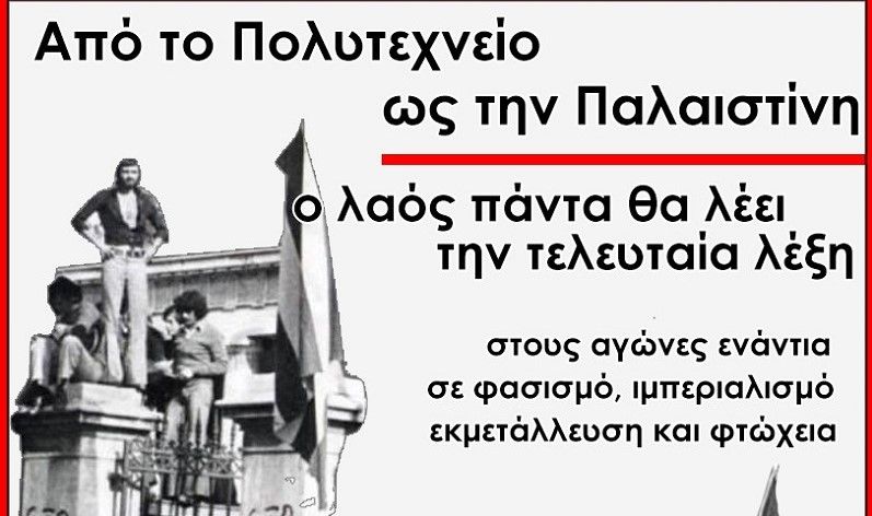 -Στους σακάτικους καιρούς που ζούμε δίπλα στο Πολυτεχνείο προστίθεται ο αγώνας της Παλαιστίνης για...