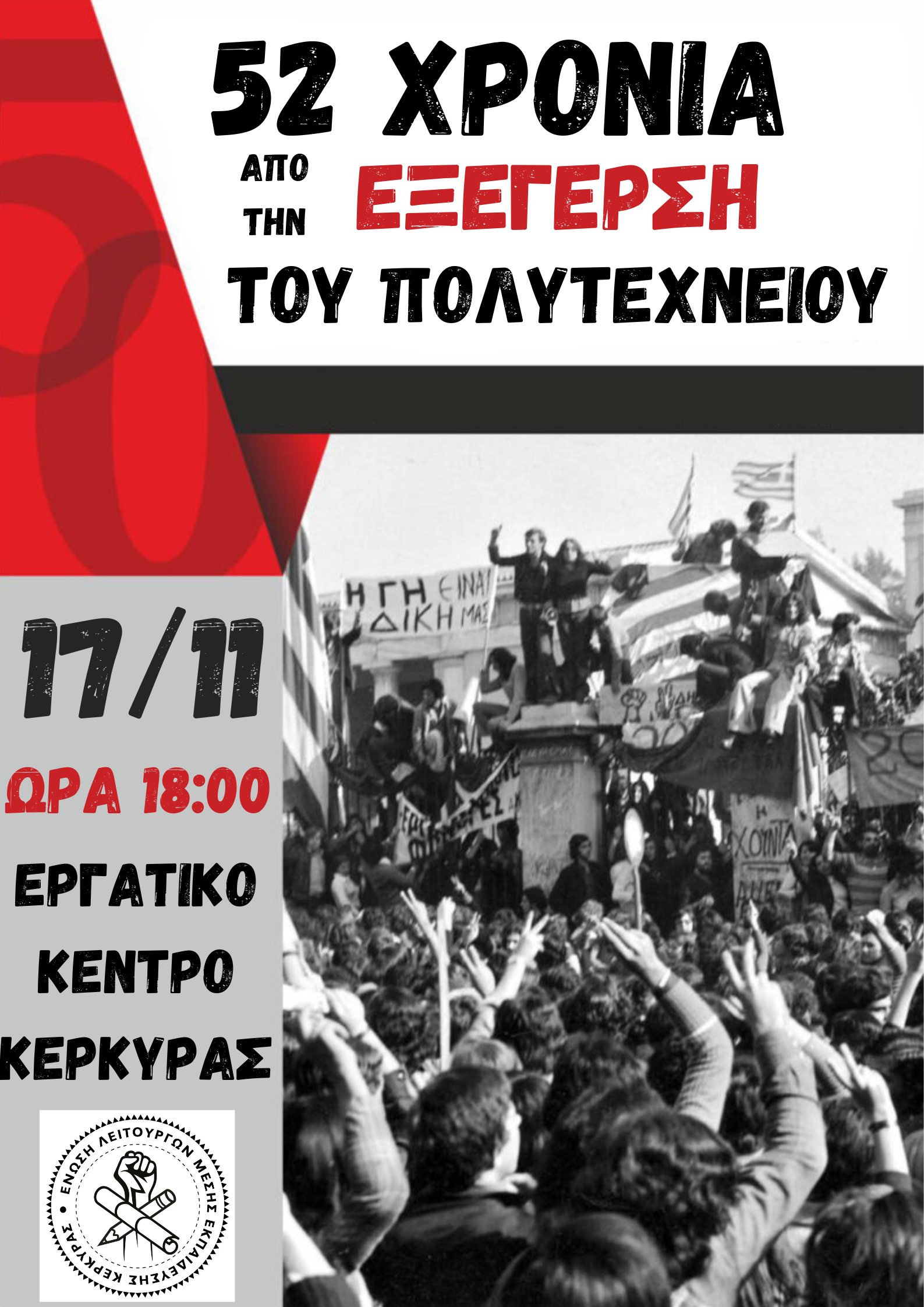 Για την 52η επέτειο από την Εξέγερση του Πολυτεχνείου