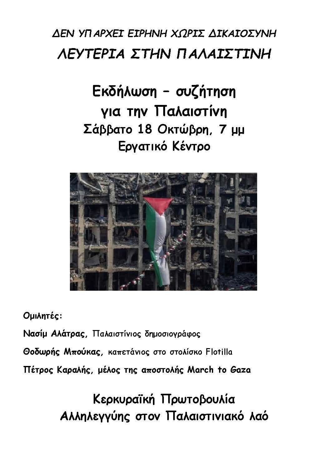 Η Κερκυραϊκή Πρωτοβουλία Αλληλεγγύης Στον Παλαιστινιακό Λαό διοργανώνει εκδήλωση για την επόμενη...