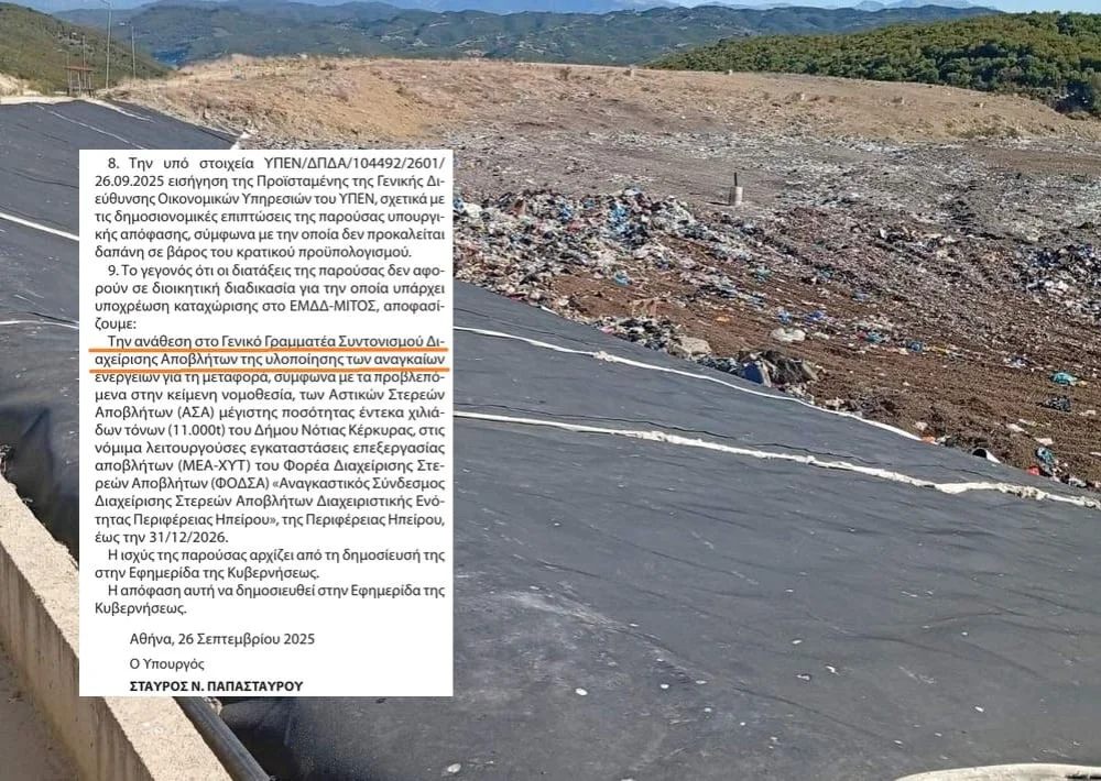 Το ΦΕΚ: Πώς τα απορρίμματα της Νότιας Κέρκυρας κατέληξαν στον ΧΥΤΥ Βλαχέρνας.. Αναφορά στην...