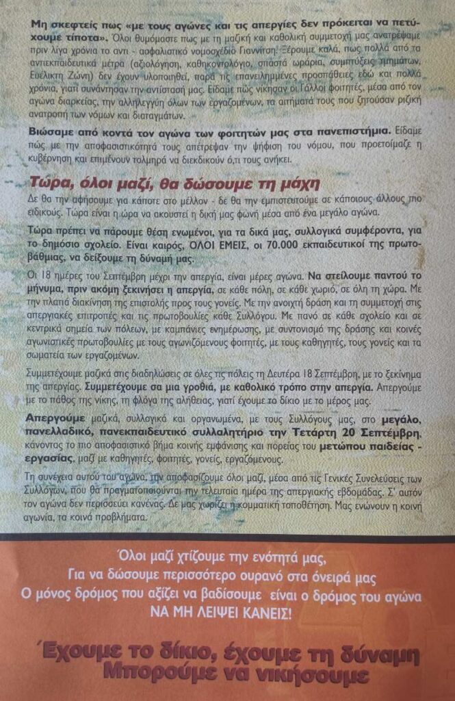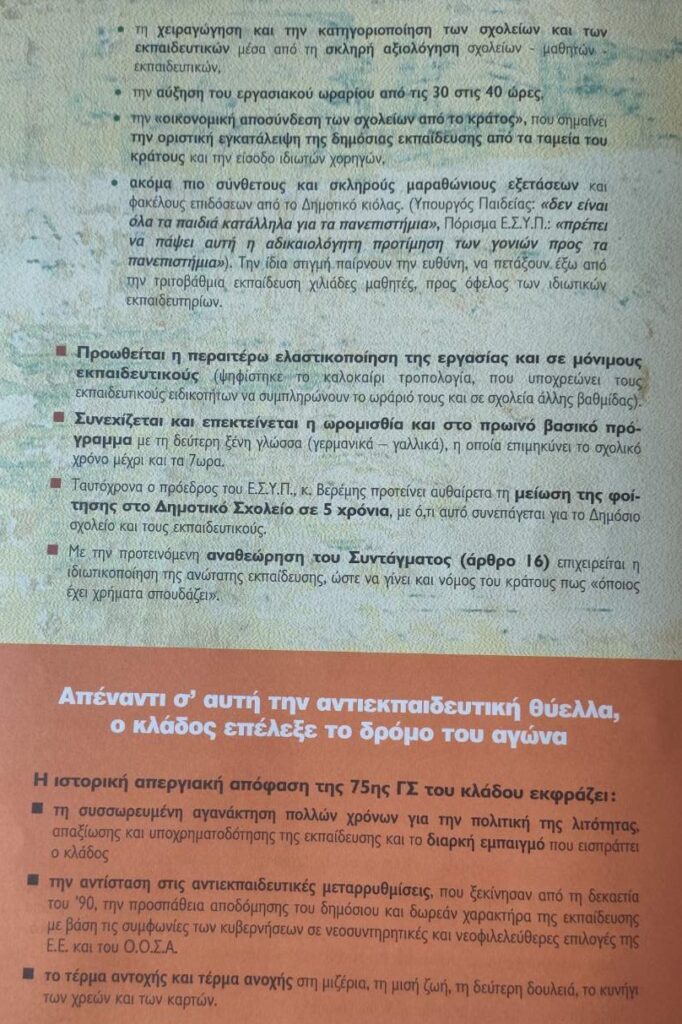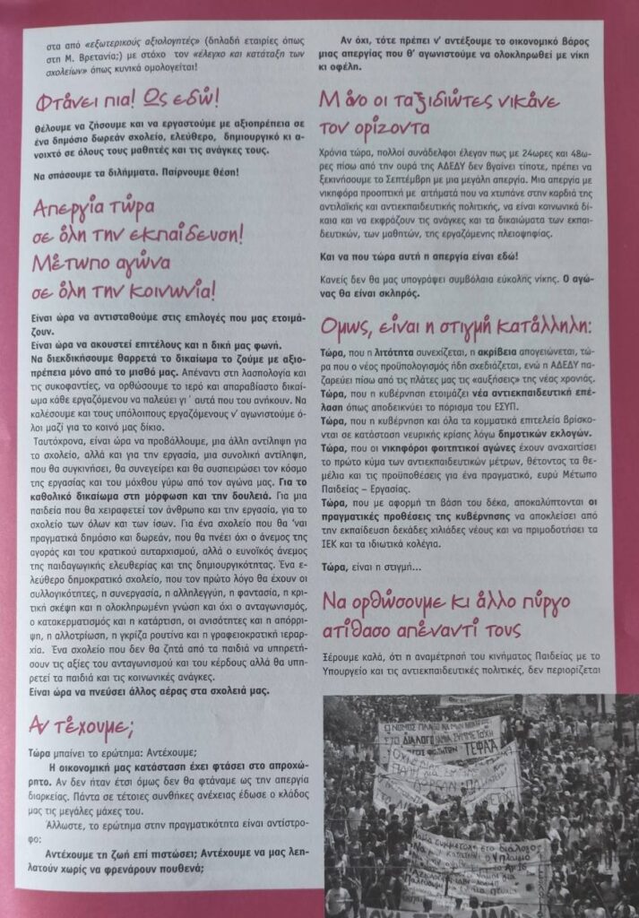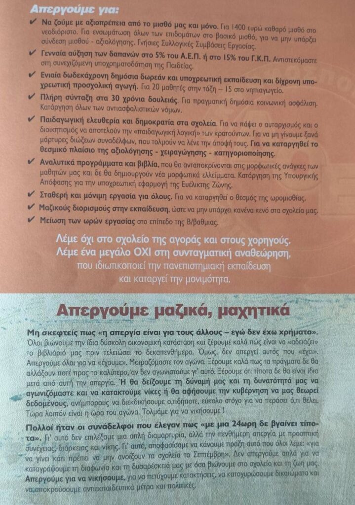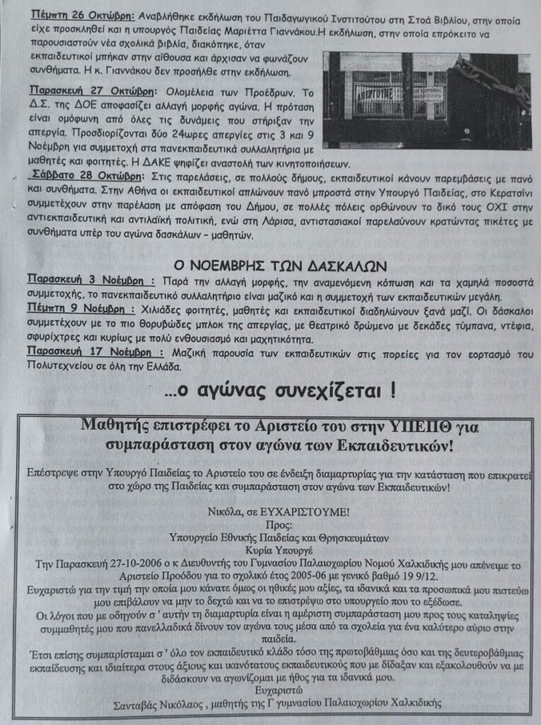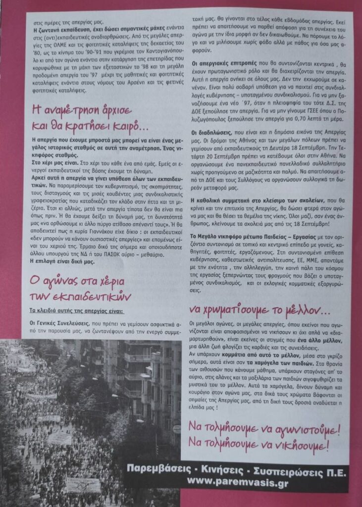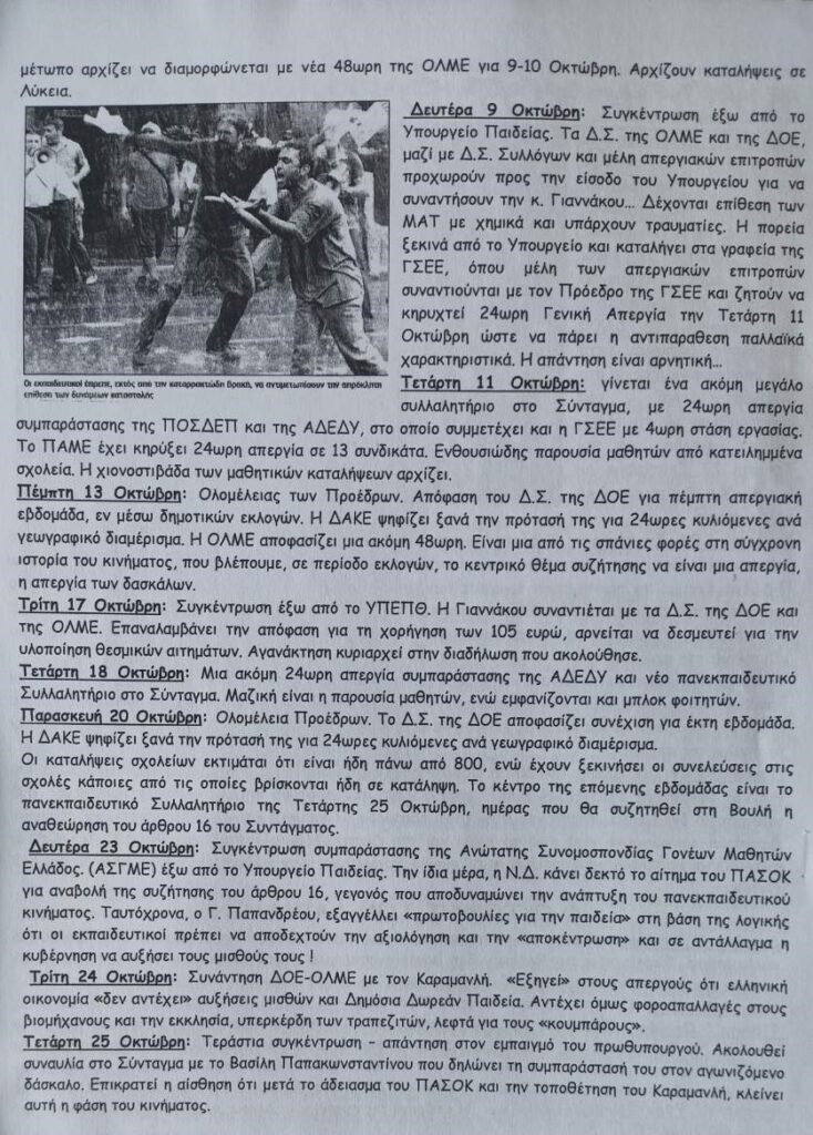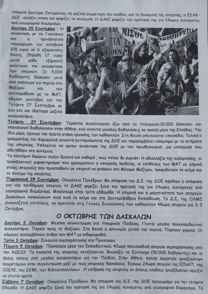 Το χρονικό της απεργίας από φυλλάδιο της Εκπαιδευτικής Παρέμβασης: