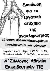 Καλούμε το Δ.Σ. της ΔΟΕ να προχωρήσει σε κήρυξη στάσης εργασίας και συγκέντρωση στα δικαστήρια, ώστε να αποκτήσει ευρύτερο χαρακτήρα αγώνα για την εξίσωση των δικαιωμάτων αναπληρωτών-μονίμων η κινητοποίησή μας.