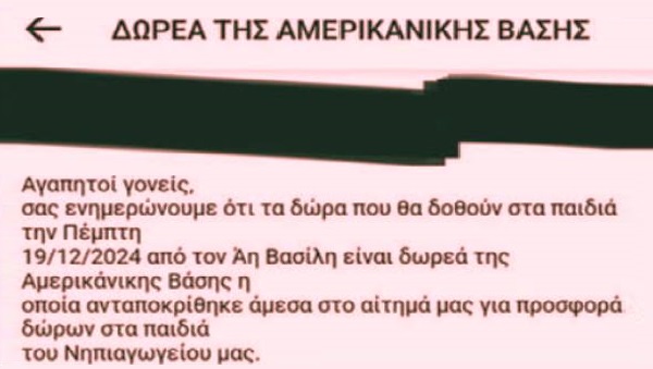 Η αμερικάνικη βάση της Σούδας στέλνει «δώρα» σε παιδιά νηπιαγωγείου!