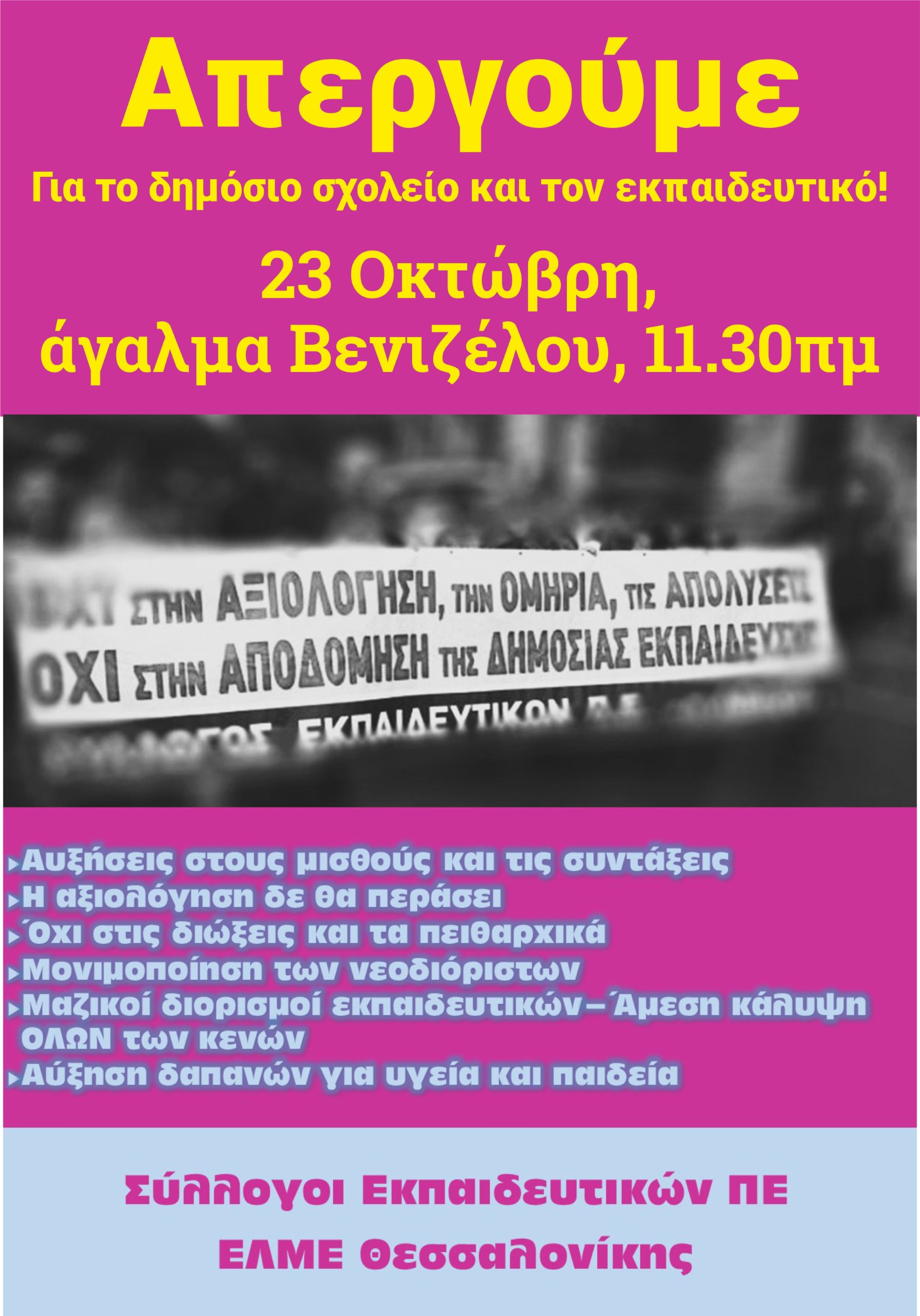 Στάση Εργασίας- Απεργιακές κινητοποιήσεις την Τετάρτη 23 Οκτωβρίου
