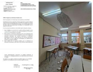 "Το μεσημέρι της Τετάρτης 5/11, έγινε γνωστό ότι αποκολλήθηκε τμήμα της οροφής στο 1ο...