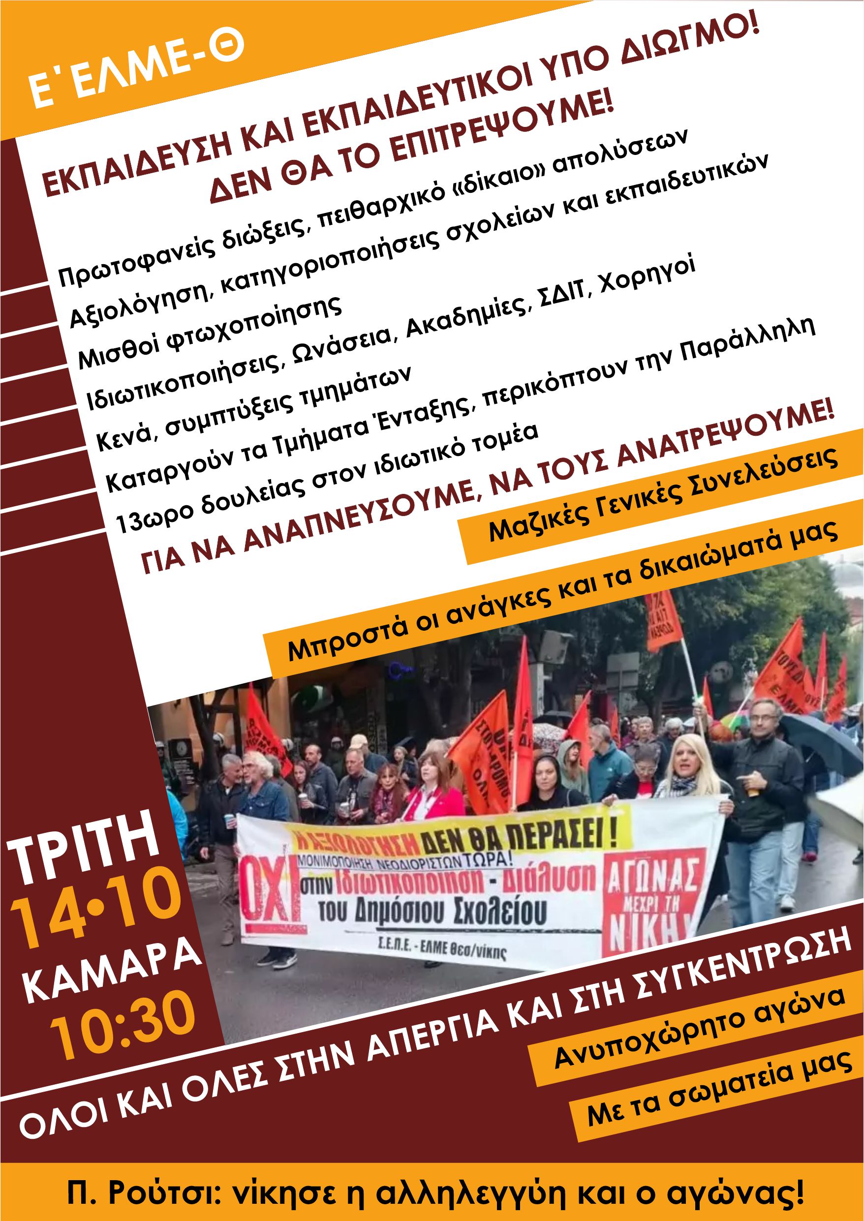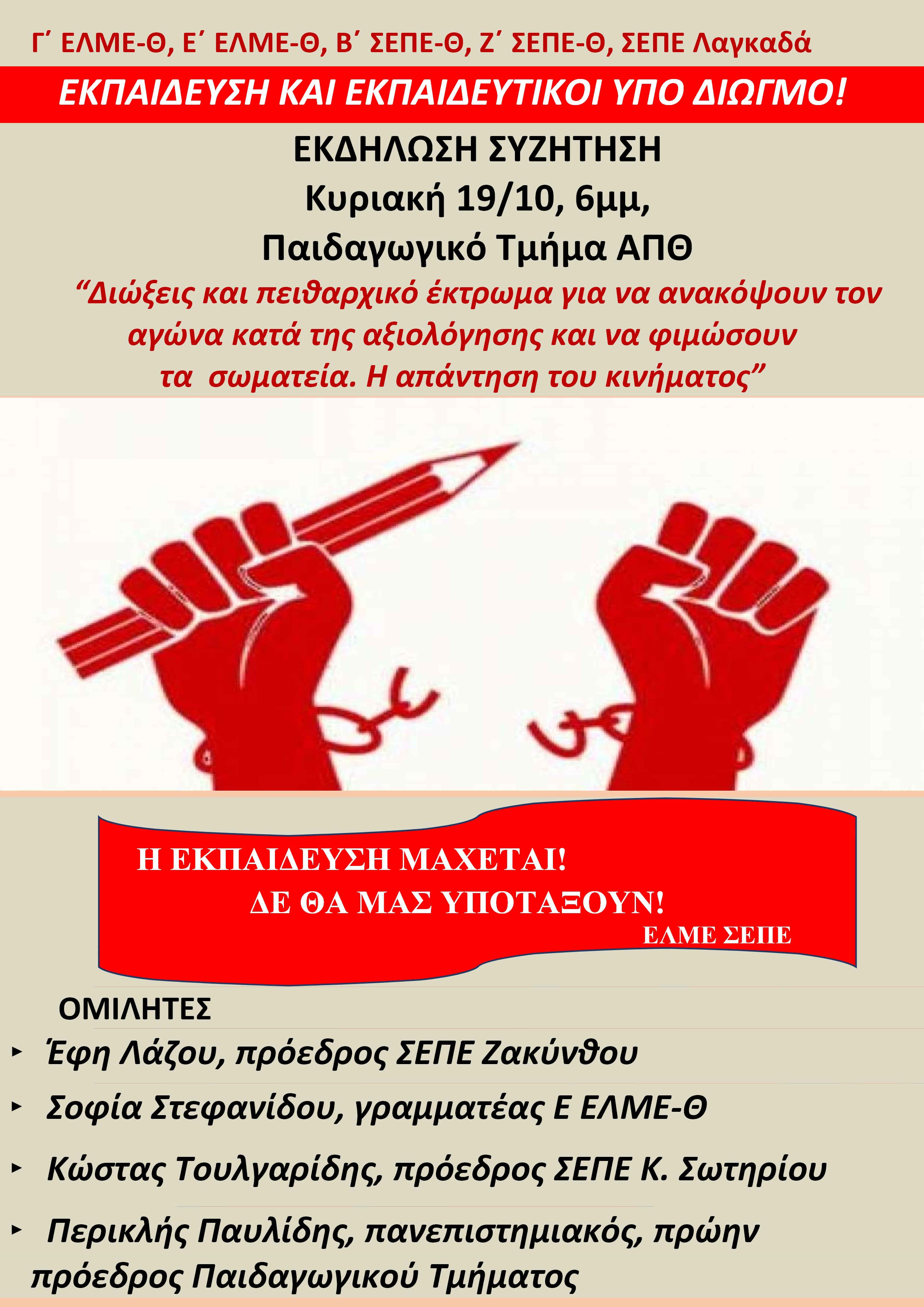Εκδήλωση-συζήτηση για διώξεις στην εκπ/ση, Κυριακή 19/10, 6μμ, Παιδαγωγική ΑΠΘ – Καλούν Γ΄, Ε΄...