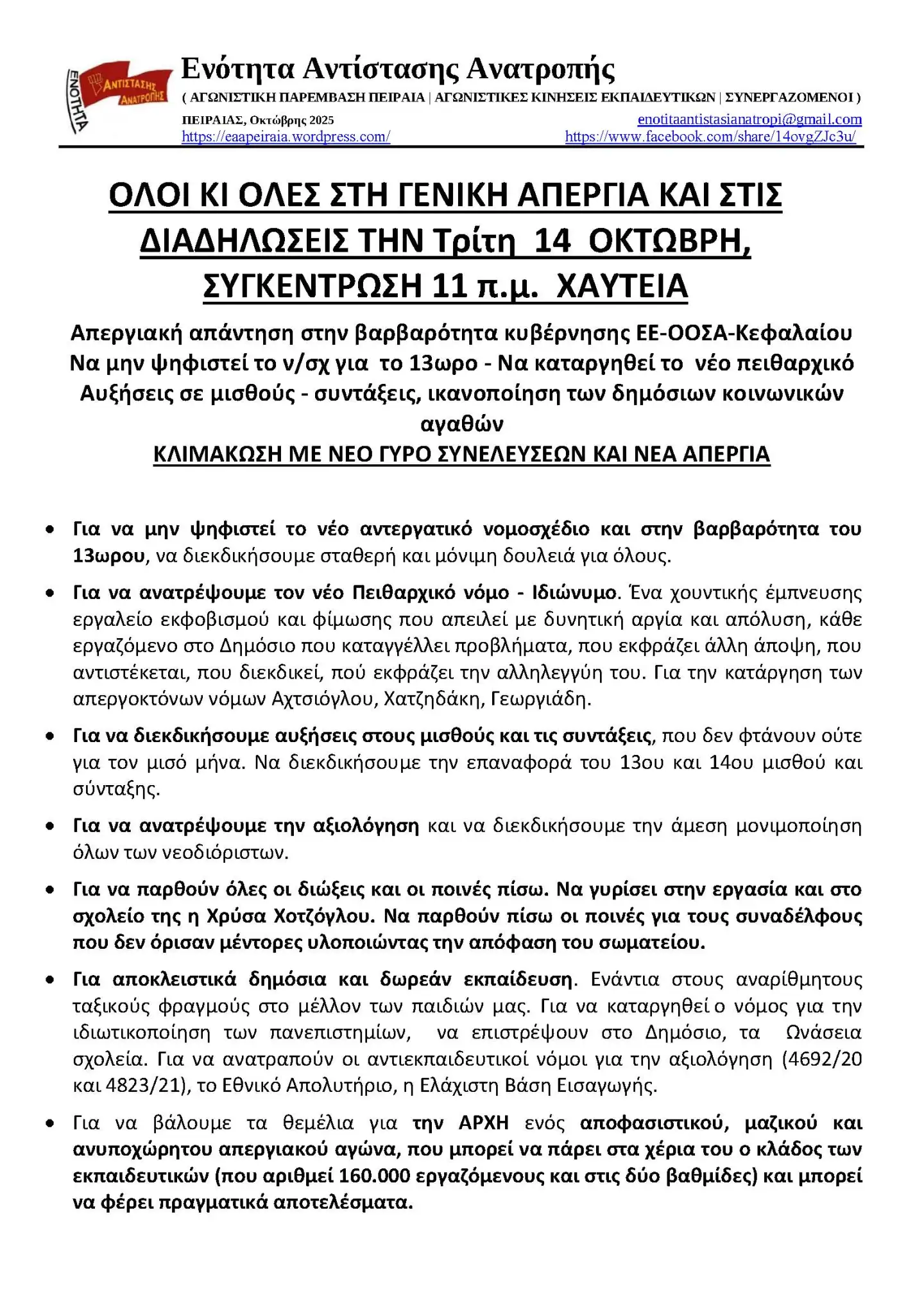 "Βιώνουμε τα αντιλαϊκά και αντιεκπαιδευτικά μέτρα με την κυβέρνηση να κλονίζεται από την...