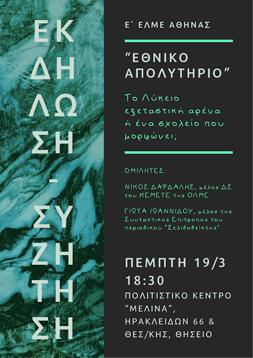 Η Ε΄ ΕΛΜΕ Αθήνας σας προσκαλεί στην εκδήλωση-συζήτηση: