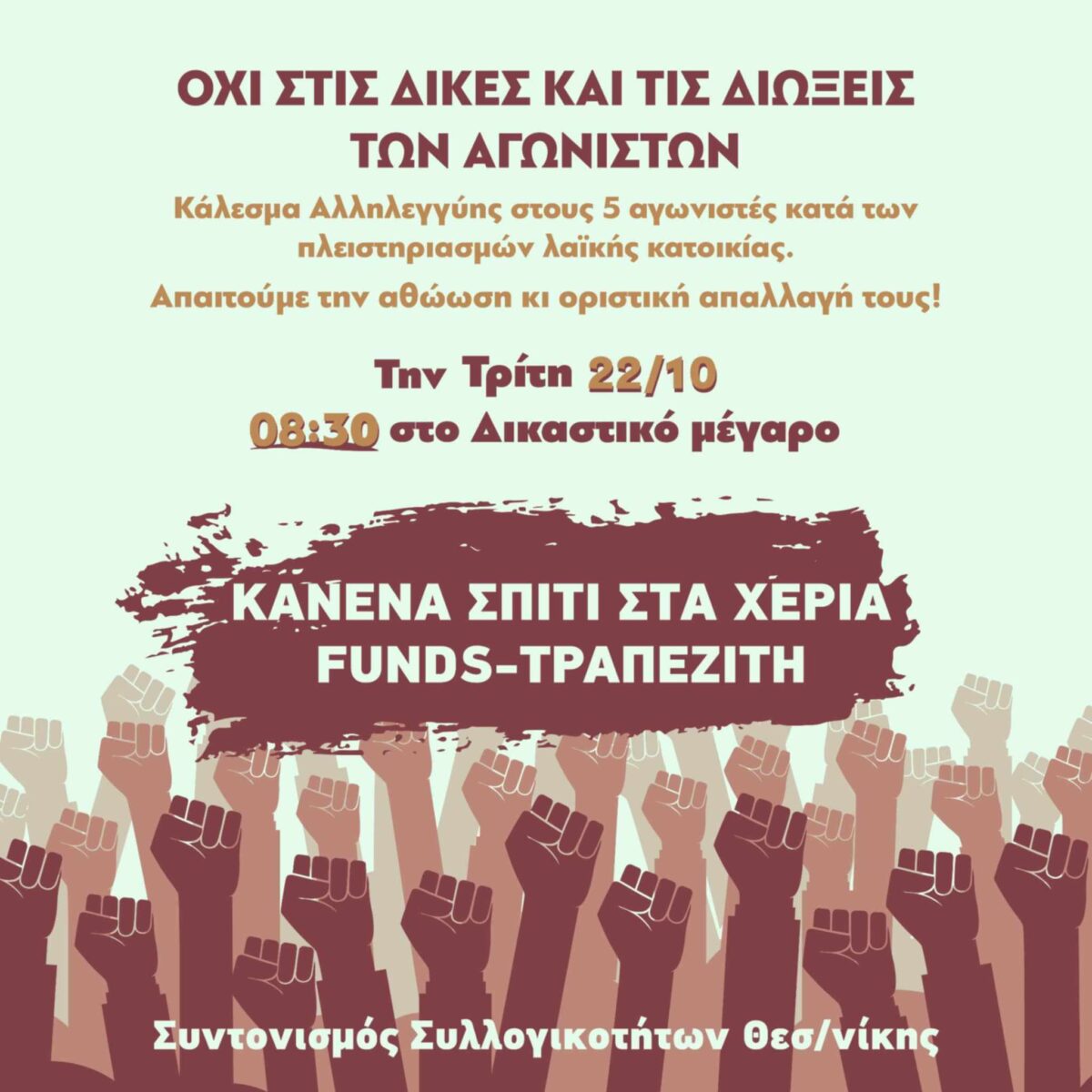 Η δίκη των 5 μελών του κινήματος κατά των πλειστηριασμών λαϊκής κατοικίας ξεκίνησε τελικά σήμερα...